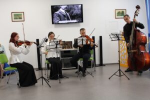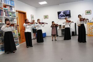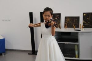 Сегодня прекрасное, возвышенное настроение гостям подарили юные музыканты, талантливые ребята из Колледжа искусств – Школы одаренных детей, отделения «Струнные инструменты». Они приготовили концерт скрипичной музыки.