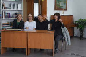 Художник вместе со всем творческим коллективом театра активно участвуют в процессе создания спектакля. Кожахметова Г. О., главный художник театра, продемонстрировала эскизы костюмов и декораций.