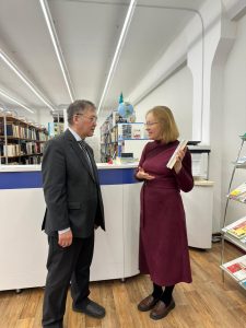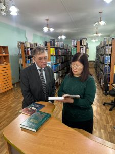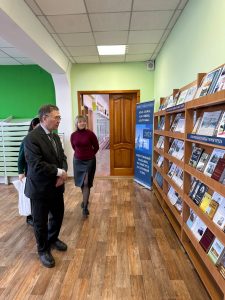 Е.Сүйінұлы кітапхананың тарихымен және оның қазіргі заманға сай қызмет көрсету жүйесімен танысып, жаңа технологиялардың енгізілуіне қызығушылық танытты. Сонымен қатар, сирек кездесетін басылымдар мен құнды әдебиеттер қорының сақталу жағдайына ерекше назар аударды. Кітапхана ұжымымен әңгіме барысында Сүйінұлы Есенгелді кітап оқу мәдениетінің дамуы мен жас ұрпақты әдебиетке баулудың маңызы туралы өз ойларымен бөлісті.
