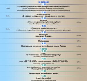 Афиша мероприятий Областной библиотеки им. С.Муканова на 28.02-05.03