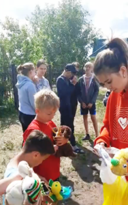 Детская деревня– это сообщество из 10-15 семей, состоящих из приёмной мамы и 5-7 детей. Мама находится с детьми 24 часа 7 дней в неделю, создаёт в доме индивидуальный быт, правила и традиции. У каждого ребенка есть личное пространство, собственные вещи и игрушки. Дети посещают обычные школы и сады, заводят друзей, растут и развиваются в социуме. Дети радостно встретили Волонтеров, которые организовали игровые программы: викторины и загадки про лето, летние каникулы, полезные советы и развлечения.