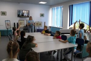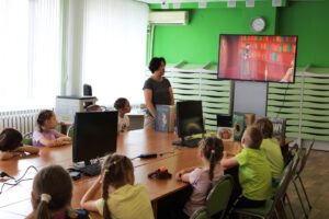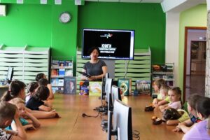 25 июня в гостях у отдела читальных залов были ребята разного возраста школы Сергия Радонежского. Для них сотрудники приготовили интерактивную программу - путешествие в мир и историю книги, «Угадай мелодию» по детским песенкам, викторину по известным сказкам.