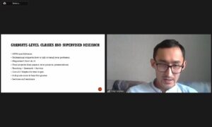 Спикер говорил о том, как поступать в вузы США, какие документы подавать.
