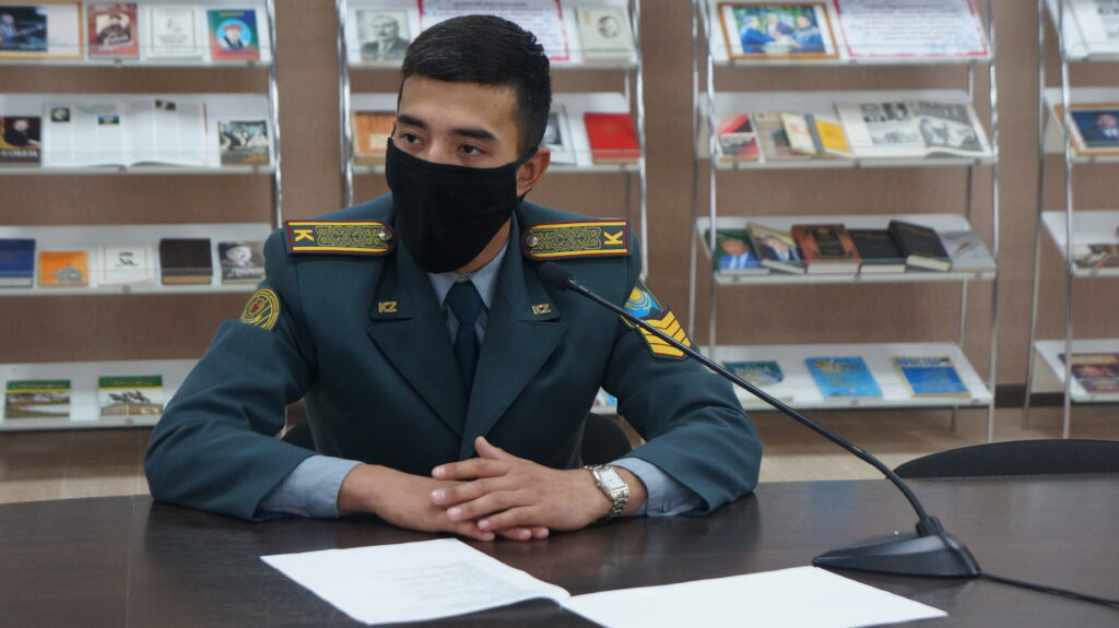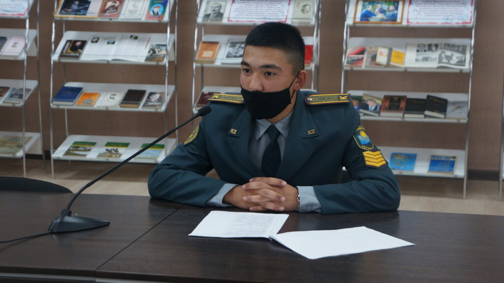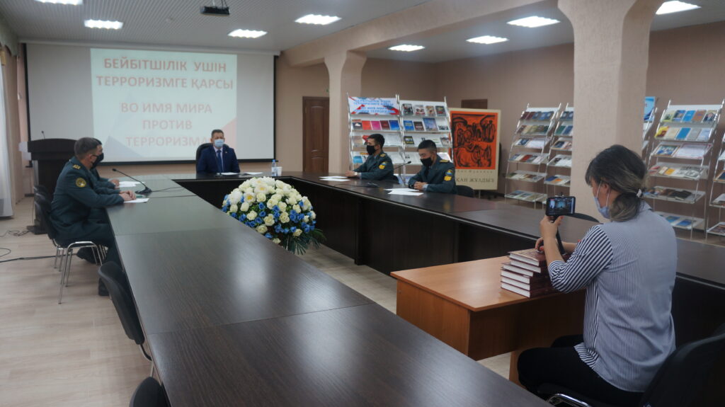 Сегодня в прямом эфире областной библиотеки прошё час информации «В паутине террора» с начальником цикла кафедры военной педагогики и психологии Военного института Национальной гвардии РК Б.Т. Кожахметовым.
