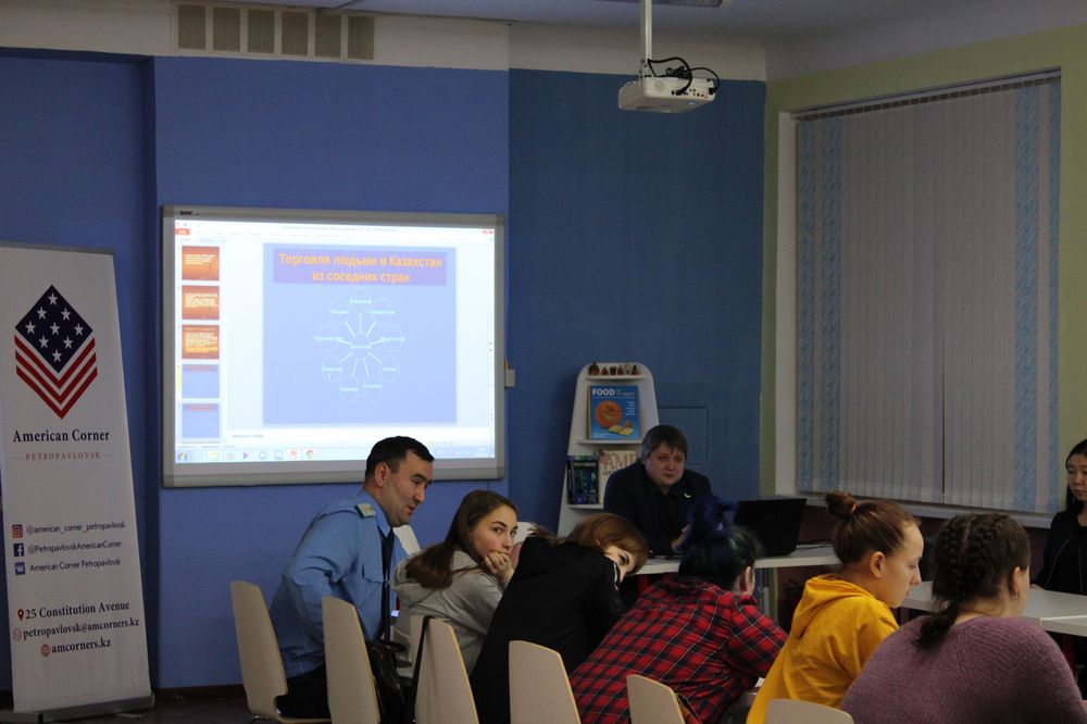 14 января в American Corner Petropavlovsk был проведен час осведомленности о проблеме торговли людьми. В качестве спикеров были приглашены сотрудник прокуратуры Олжас Думанович Кенесов и представитель общественного объединения “Equal rights” Александр Данчев.