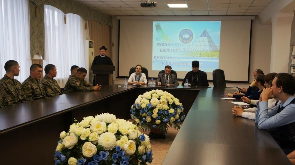 Религиовед, консультант, теолог Мурат Набиевич Амиржанов, выступая перед аудиторией, отметил важность сохранения межконфессионального сотрудничества в мировом масштабе, а также изучение религии для самообразования. Антоний Чуриков, священник местного православного религиозного объединения «Приход Вознесенского кафедрального собора Петропавловской и Булаевской Епархии» рассказал о работе, которую проводят представители духовенства с молодёжью в последние годы. Отец Петр Лахета, настоятель религиозного объединения Римско-Католического Прихода «Святая Троица», в своём выступлении отметил, что свободу вероисповедания выбирает каждый сам, и в нашей стране это является приоритетом. Магистр гуманитарных наук, эксперт-аналитик отдела анализа и развития межконфессиональных отношений КГУ «Центр общественного развития и информации» Синяков Олег Витальевич интересно рассказал о работе с различными религиозными конфессиями, на слайдовой презентации показал культовые сооружения религий Скверо – казахстанской области.