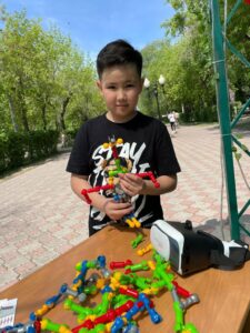 Для праздника на улице Конституции Казахстана установлены юрты, которые стали локациями для разных вариантов времяпровождения. В одной из юрт вниманию детей и родителей мы представили книжную выставку «Детство – это я и ты», которую украшали книги для чтения в кругу семьи. Малыши с удовольствием рассматривали сказки и рассказы, а родители знакомились с книгами по воспитанию, чтобы лучше понимать своих маленьких непосед. В другой юрте детям предложили настольные игры и конструкторы. Это неудивительно, ведь каждый ребенок по природе творец и фантазер. Пусть они будут счастливы, здоровы, отважны и непобедимы!