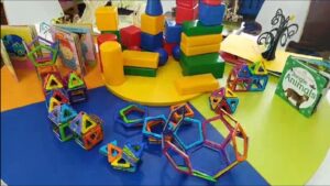 Для самых маленьких тоже найдется занятие! Они могут собрать из кубиков свой первый замок и поиграть с магнитами и собрать фигуры из них. Причем собирать из магнитов любят у нас не только дети, но и взрослые.