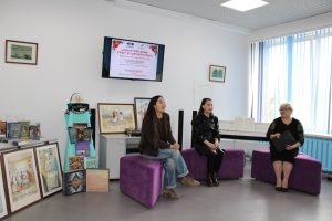 В рамках недели Национального дня книги в отделе литературы по искусству Областной библиотеки имени Сабита Муканова прошел диалог поколений «Зачем людям искусство?». На мероприятие были приглашены творческая, успешная и талантливая молодежь из креативного центра: Салима Кулакбаева - организатор «Үндестік», продюсер проекта «Сен маған ұнайсың», Назерке Ұзақбек - актриса, ведущая проекта «Сен маған ұнайсың». А также были приглашены старшее поколение литературно-драматического кружка «Золотая лира», созданного при ОО «Секрет долголетия», Детская деревня семейного типа и IT школа-лицей имени Магжана Жумабаева.