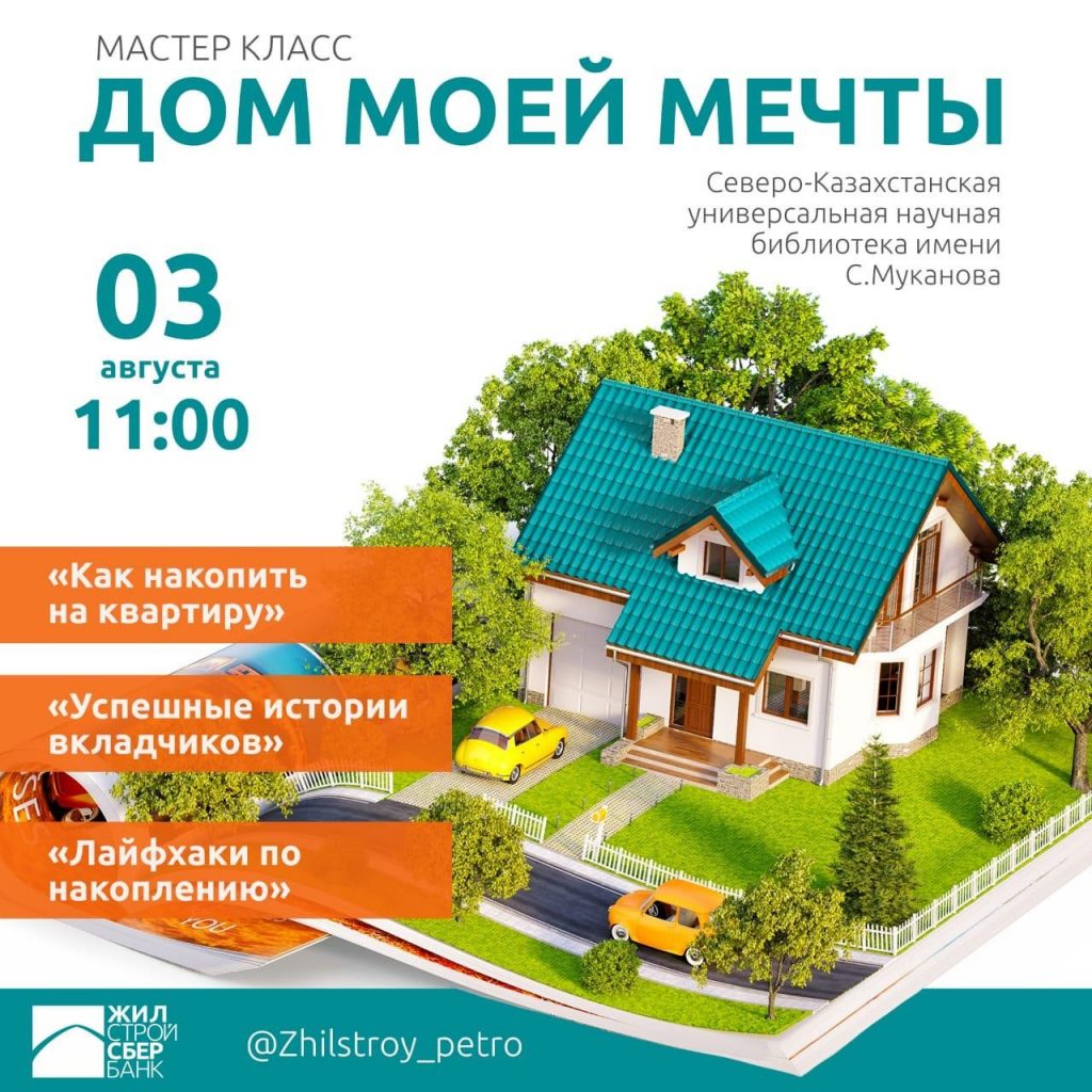 3 августа Северо-Казахстанский областной филиал АО «Жилстройсбербанк Казахстана» приглашает всех на Мастер класс «Дом моей мечты»!