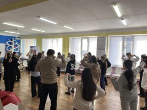 Сегодня учились управлять своим голосом через диафрагму, контролировать тело и движения, узнали много полезных советов по управлению своими эмоциями, проигрывали разные ситуации, например, «Зеркало и эмоция/Mirror and emotion»