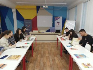 Зал мировой литературы располагает богатейшим фондом более чем на 50 языках народов мира. Для изучения иностранного языка имеется вся необходимая литература. В зале проходят клубы по изучению английского языка, работает American Corner Petropavlovsk. Ребята заинтересовались предложенными журналами, книгами, редкими изданиями зала - pop-up книгами.