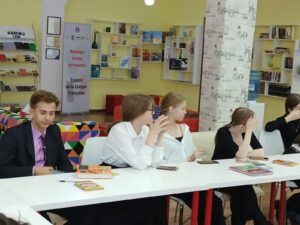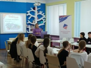 Для участников была подготовлена иллюстрированная красочная презентация на английском языке. По карте путешествий ребята ознакомились со станциями и совершили поездку на воображаемом автобусе по станциям «История/History», «Музеи/Museums», «Памятники/Monuments», «Спорт/Sports», «Парки/Parks», «Традиции/Traditions». В форме квиза отвечали на вопросы, путешествуя из одной станции в другую. Например, были такие вопросы, как соотнести название музеев с краткой информацией о них. Либо предлагалось закончить предложения путём устного выбора одного из трёх вариантов в разделе «Памятники/ Monuments» и «Музеи/Museums». Или выполнить ещё такое задание: путём прочтения информации внизу слайда нужно было догадаться о каком виде спорта идет речь. В разделе «Традиции/ Traditions» предлагалось закончить предложения, добавив слово или выражение без вариантов ответа.