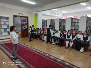 Кітапхана маманы алдымен кітапханадағы абономенттік қамтамасыз ету, оқу залы, өнер әдебиеттері, қазақ, шет тіліндегі әдебиеттер, коворкинг орталығы тағы да басқа бөлімдермен таныстырды. Балаларды «Maker Space» аймағы қызықтырып, арнайы қызметкерден өз сұрақтарына жауап алды. Сонымен қатар оқушылар С. Мұқановтың мемориалдық музей-бөлмесімен танысып, жерлес жазушымыз туралы толық ақпарат алды.