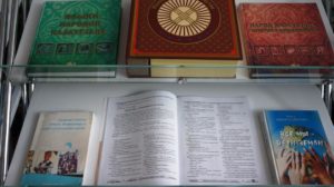 На выставке представлена литература, посвященная традициям и обычаям, литературе, культуре народа Казахстана.