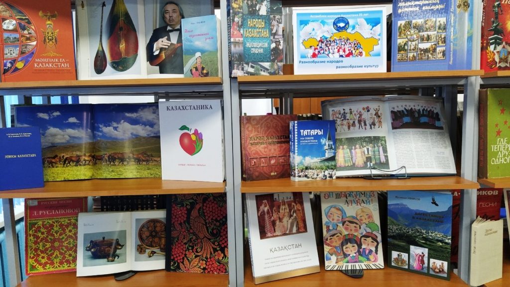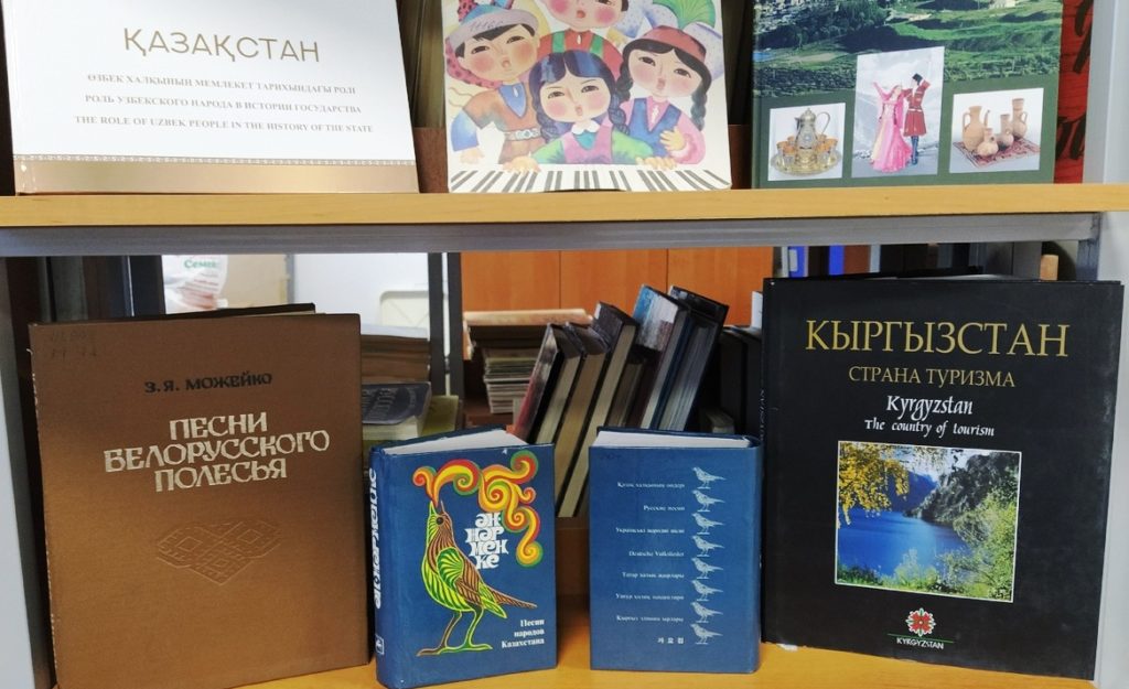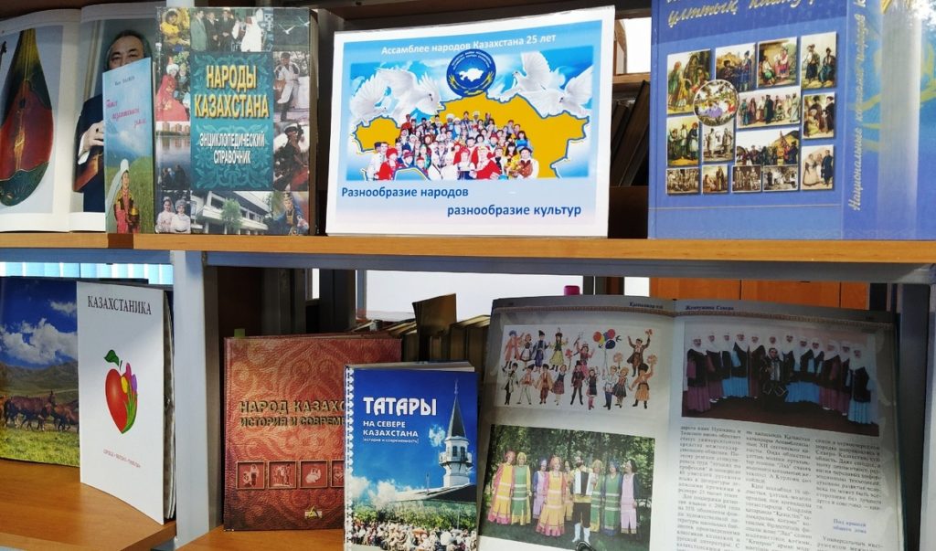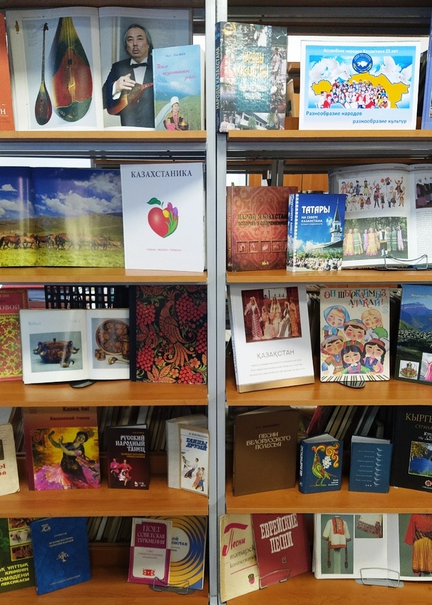Отдел искусства оформил выставку - знакомство "Разнообразие народов - разнообразие культур", посвященную 25-летию Ассамблеи народа Казахстана. Выставка отражает культуру и искусство разных этносов.