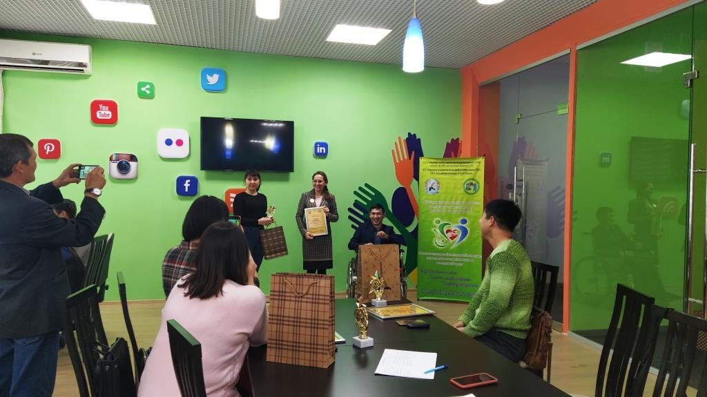 Представители ОЮЛ «Объединение инвалидов «АРДОС-Жүрек» провели в коворкинг центре церемонию награждения победителей конкурса «Золотое перо и социальные инновации».