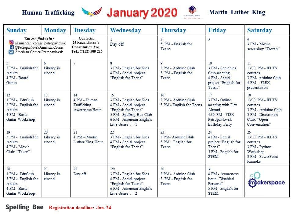 Keep and share our schedule for January.