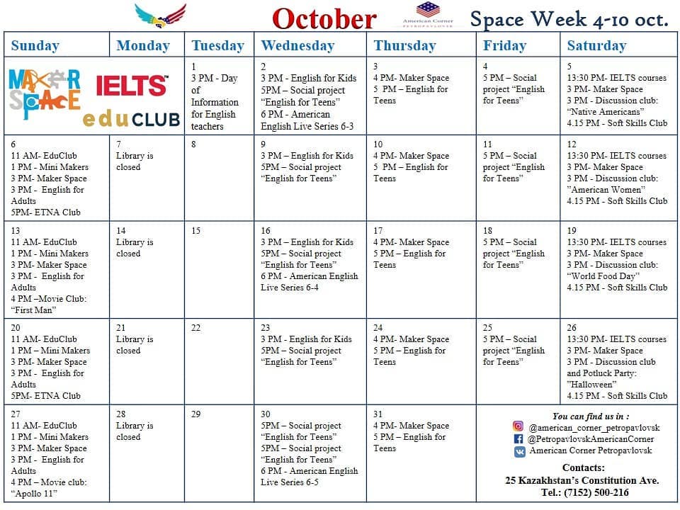 Maker Space Clubs, IELTS courses, English for Soft Skills Club, Edu Club, Discussion Club, Movie Club, ETNA Club and more are waiting for you in our American Corner!