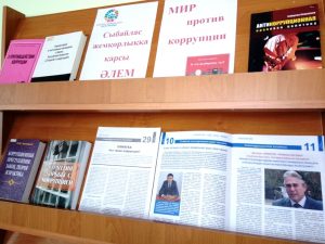 8 февраля в отделе читальных залов оформлена книжная выставка "Сыбайлас жемқорлыққа қарсы әлем" = "Мир против коррупции".