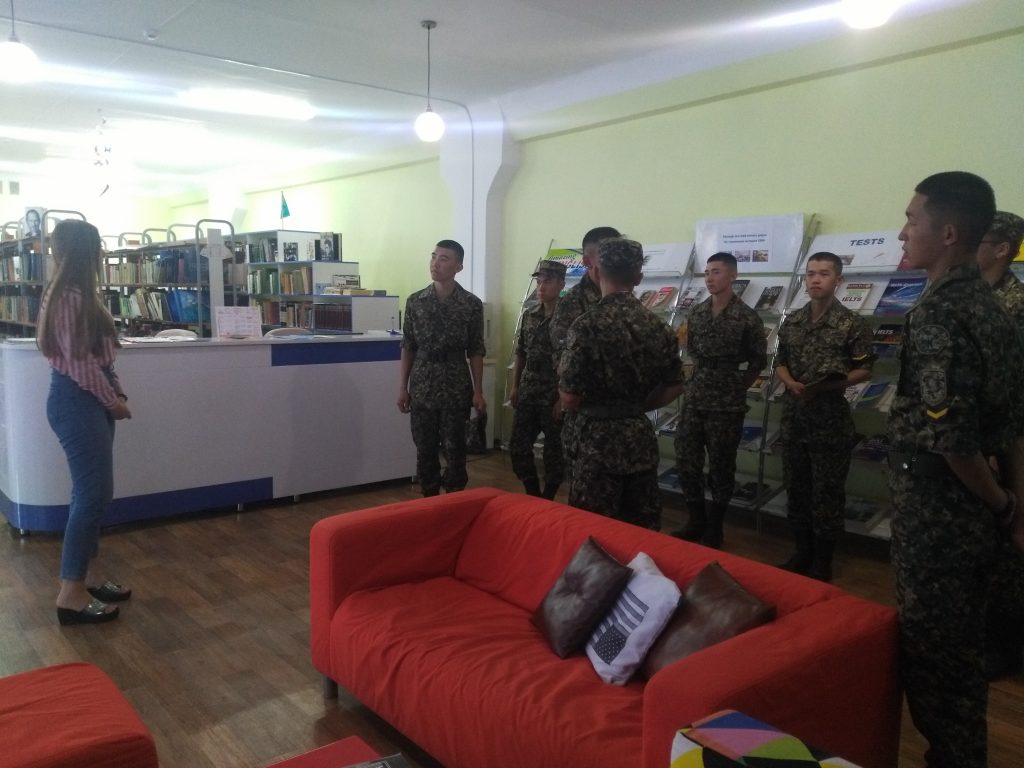 25 августа нашими гостями стали курсанты Военного института. Библиотекари познакомили их с отделами искусств, читальных залов, информационно-библиографическим, абонемента, залом мировой литературы, музеем Сабита Муканова и редких книг. Курсанты научились пользоваться электронным каталогом, записались в библиотеку и стали нашими постоянными читателями. Также они показали свою смекалку, логику, знания по истории, географии, литературе и культуре.