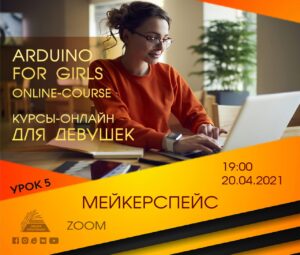 Приглашаем на курсы-онлайн для девушек "Arduino for Girls online-course" по направлению «Мейкерспейс». На платформе ZOOM пройдёт 5 урок.