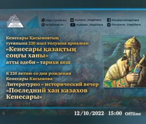 Литературно – исторический вечер «Последний хан казахов Кенесары»