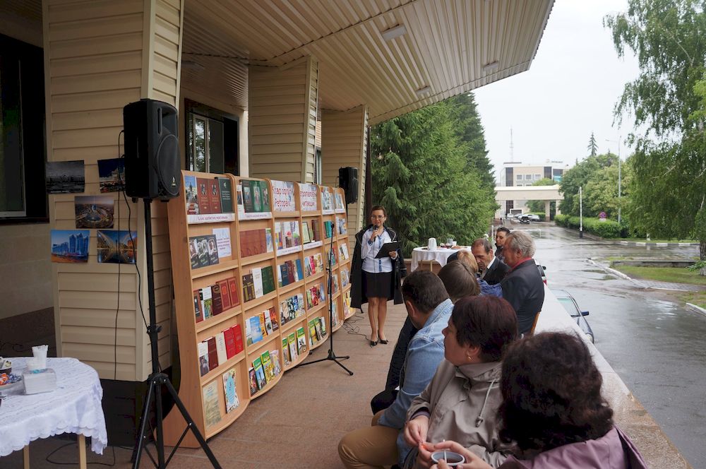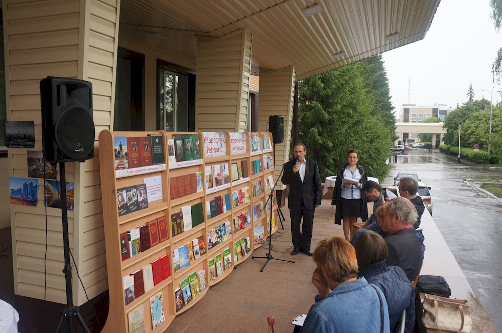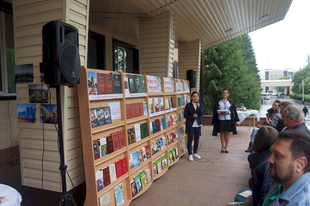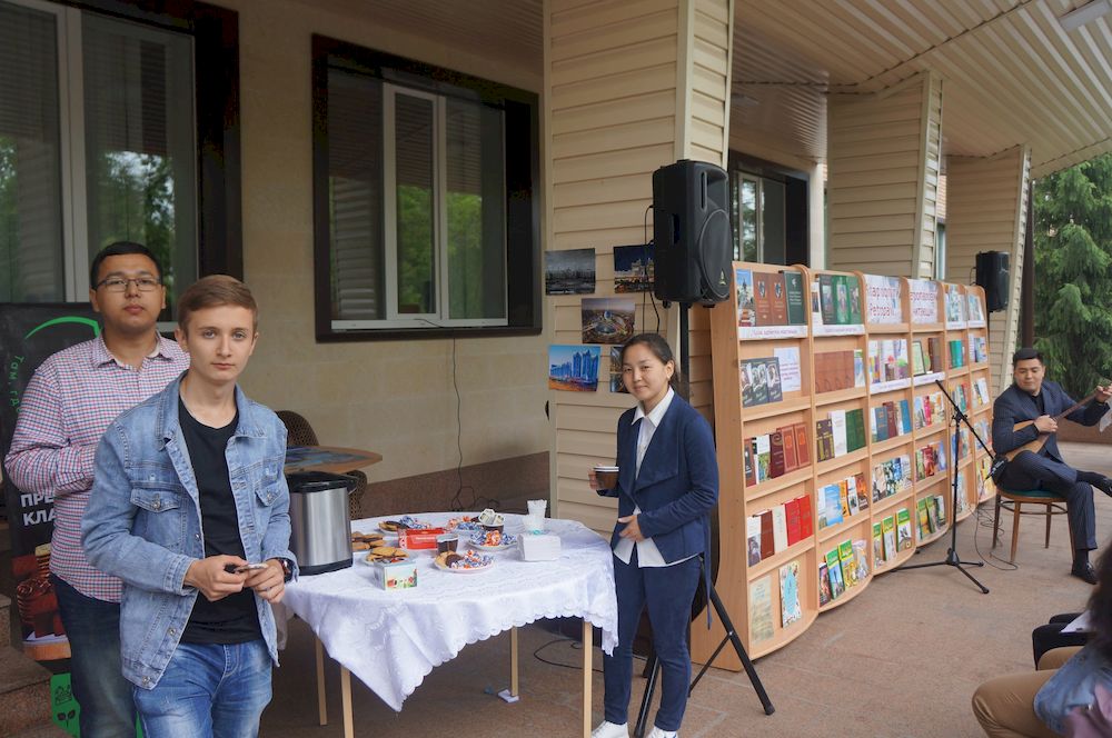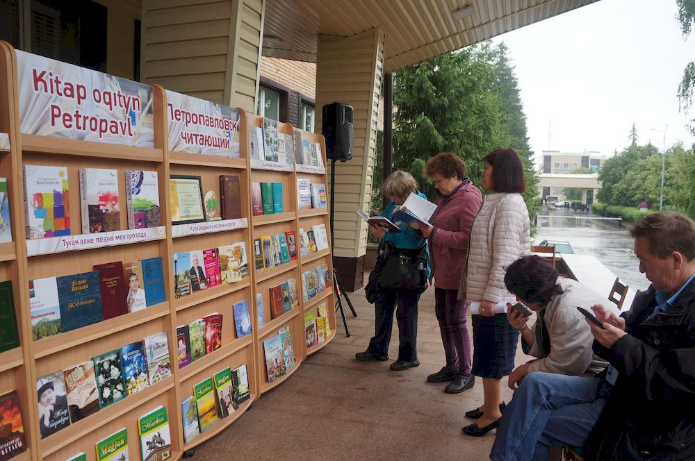 На крыльце областной библиотеки имени Сабита Муканова развернулась литературно-музыкальная площадка с книжно-иллюстративной выставкой «Петропавловск читающий» и фотовыставкой «С днём рождения, столица!», а приятным дополнением стало самое настоящее литературное кафе с чаем и сладостями для всех желающих.