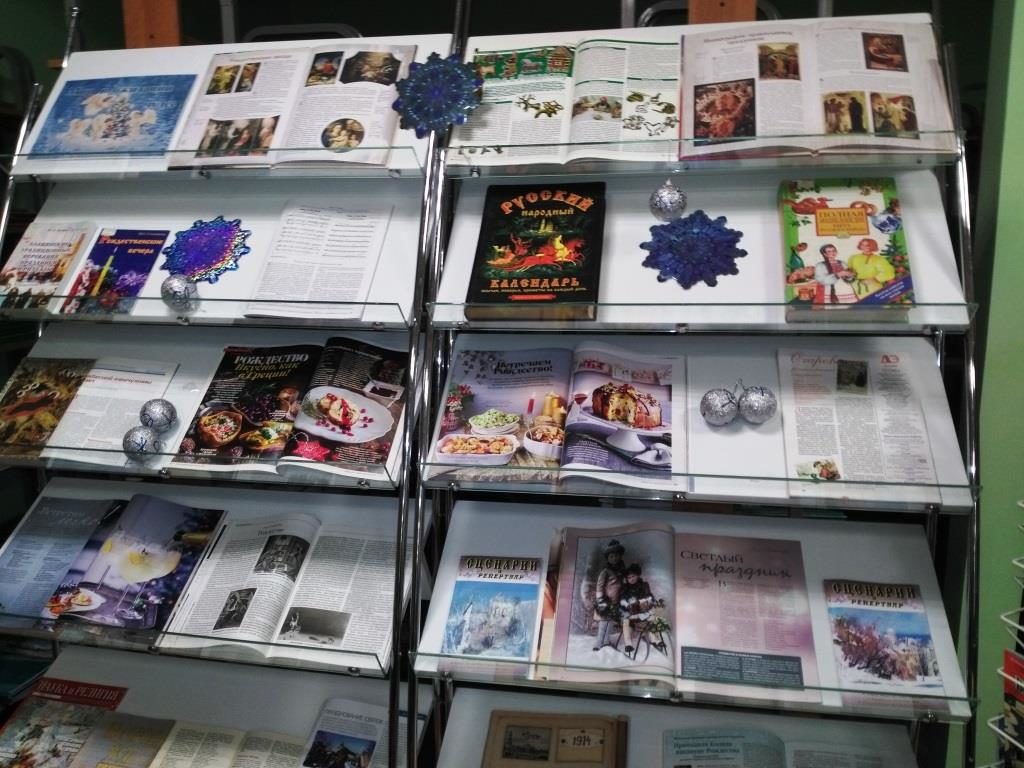Книжная выставка рассказывает об истории праздника, рождественских традициях, приметах и поверьях. Материалы выставки помогут красиво и празднично сервировать стол и организовать незабываемый праздник.