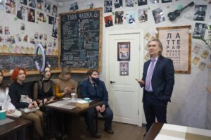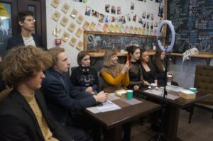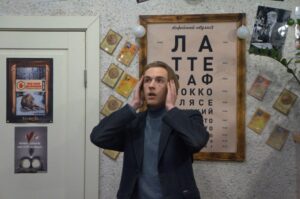 Вечер подготовили ребята–воспитанники молодежной театральной студии «Тишина закулисья» вместе с руководителем студии, актером, режиссером Областного русского драматического театра им. Н.Погодина Ринатом Исмаиловым. В уютной камерной обстановке кофейни прозвучали стихи Маяковского разных лет. Ребята эмоционально, с чувством выразили через поэзию настроение поэта. Гости услышали интересные факты биографии и творчества Владимира Маяковского.