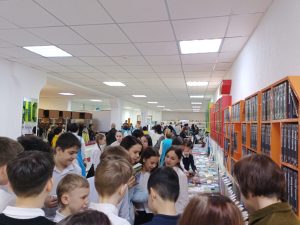Посетители были рады познакомиться с залами нашей библиотеки, заглянуть в отделы, увидеть книжно-иллюстративные выставки с элементами интерактива, познакомиться с презентацией ИИ Нейро-ассистента AI ZHAN и, конечно, стать участниками читательской конференции.