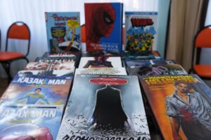 Стоит обратить внимание на альбом с дисками – это киноэпопея «Путь лидера», в которой содержатся 5 фильмов о жизни нашего Первого президента Нурсултана Назарбаева.