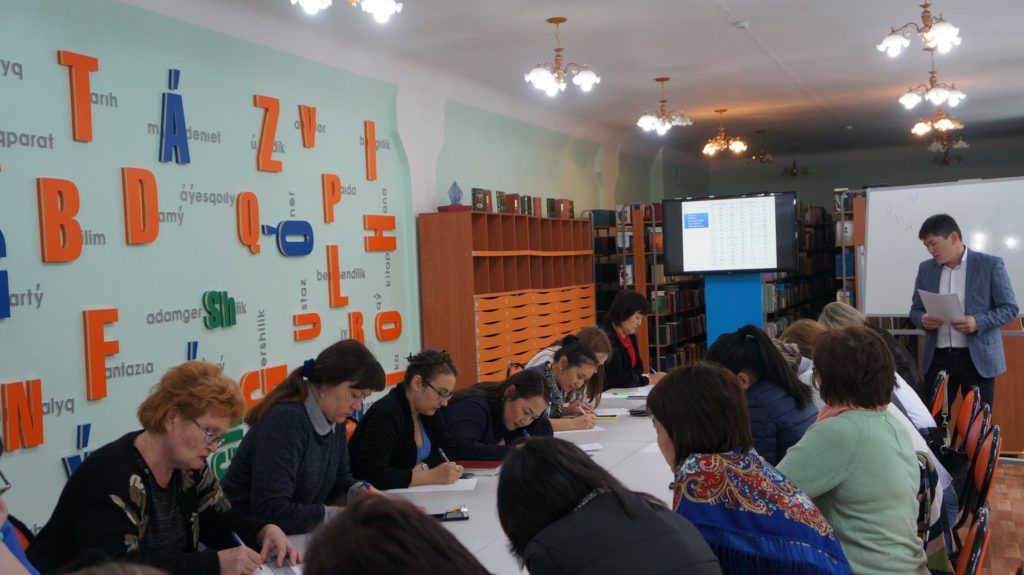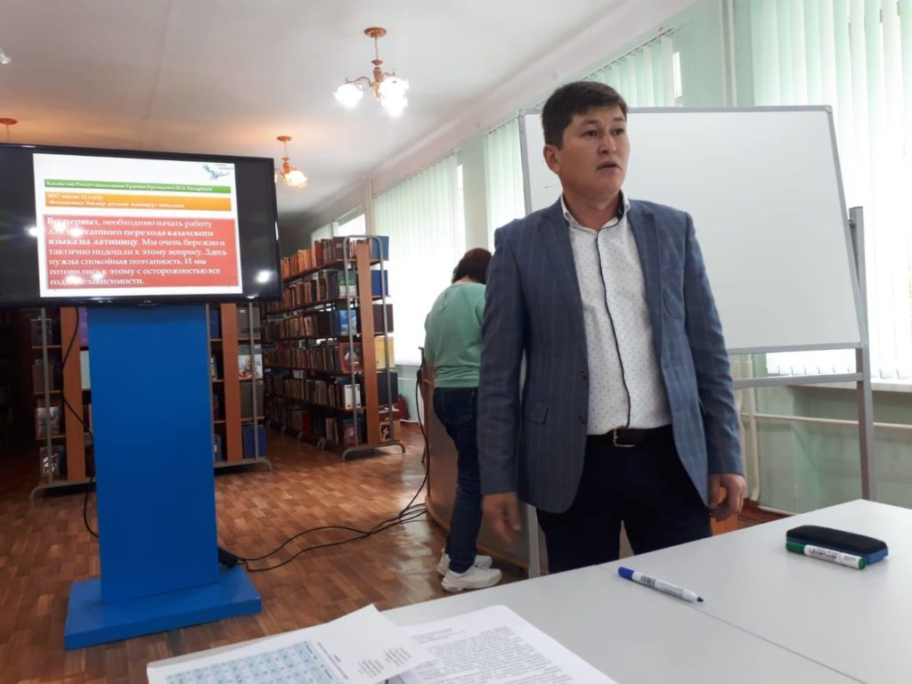 10 сентября в 11.00 ч. в Областной универсальной научной библиотеке имени Сабита Муканова прошел общеказахстанский открытый диктант на казахском языке на основе латинской графики «2019 jyl – Jastar jyly», в котором приняли участие работники учреждений культуры города Петропавловска. Целью мероприятия является укрепление роли государственного языка, как языка межэтнической коммуникации. Диктант прошел одновременно в городе Нур-Султане в Национальной академической библиотеке РК, а также во всех областных, городских и районных библиотеках и вузах страны.