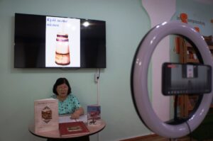 Онлайн дәрісті осы кітапхананың бөлім басшысы Майра Әшімова өткізді. Ол ежелгі халық шеберлерінің емен, қайың және басқа да күшті ағаштарды пайдалана отырып, экологиялық таза табиғи материалдан ыдыс жасағанын, ұлт тұрмысы өмір салтында ас сақталатын ыдыс-аяқтарға ерекше көңіл бөлгенін айта келіп, қазақтың ұлттық ағаш ыдыс-аяқтарына жан-жақты тоқталып өтті. Олар: астау, тостаған, келі-келсап, зерен, тегене, саптыаяқ, ожау, қасық, табақ, күбі, піспек және кебеже.