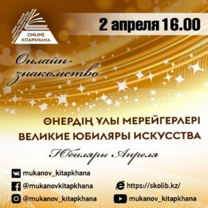 Онлайн-знакомство «Өнердің ұлы мерейгерлері - Великие юбиляры искусства». Юбиляры апреля.