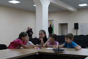 Вместе со студентами СКУ им. М. Козыбаева — Аленой Лесиковой и Глебом Сухаревым — дети говорили о главном: