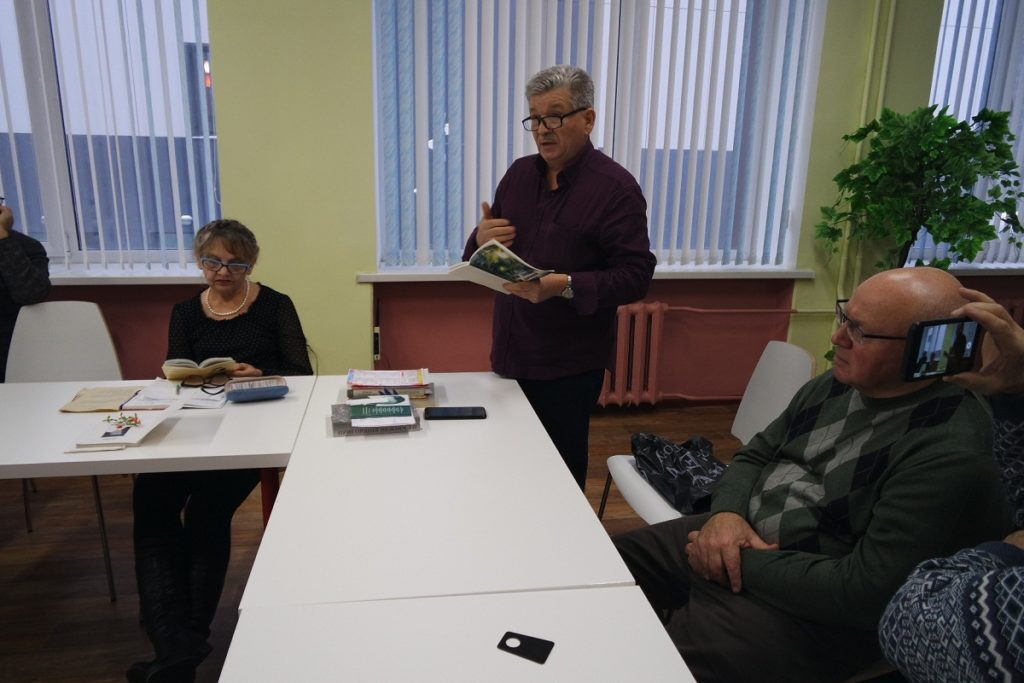 Предприниматель, коллекционер, врач Владимир Поляков рассказал на заседании о своем знакомстве с В.И. Любушиным и подарил клубу книгу с автографом поэта и фотографии Любушина из своего личного архива.