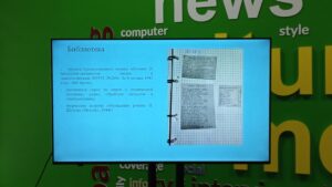 Презентацию проекта о тыловом Петропавловске (1941-1945 гг.), подготовленного педагогами и учащимися КГУ «Областная специализированная школа-лицей-интернат для одаренных детей ЛОРД», провела учащаяся 11 класса Ангелина Лузанова. Она представила очень интересный материал по теме «Культура Петропавловска в годы войны», где была отображена работа кинотеатров, библиотек, театров. Изложены интересные сведения из истории Областного театра драмы, Областной библиотеки. Директор библиотеки Цейтлин Е.Я., эвакуированная из Москвы, отмечала в своих заметках, что, несмотря на то, что многие ушли на фронт, библиотека не была пуста. Это подтверждает и ветеран труда Горшкова Л.К.: «Мы стали много читать».