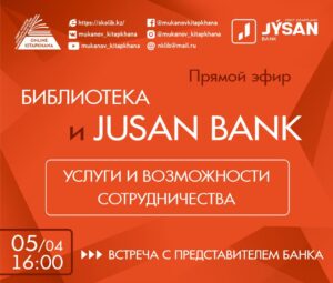 Приглашаем на прямой эфир "Библиотека и Jusan bank: услуги и возможности сотрудничества» - встреча с представителем банка.