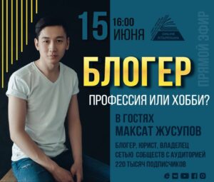 Приглашаем на прямой эфир "Блогер - профессия или хобби?". А разобраться в этом вопросе нам поможет Максат Жусупов блогер, юрист, владелец сетью собществ с аудиторией 220 тысяч подписчиков. Не пропустите, будет интересно!