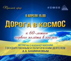 Сегодня пройдёт в прямом эфире онлайн встреча к 60-летию первого полёта в космос с казахстанским государственным и политическим деятелем Анатолием Афанасьевичем Башмаковым. 12 апреля исполняется 60 лет первому полету человека в космос. В 1961 году советский космонавт Юрий Гагарин на космическом корабле «Восток-1» стартовал с космодрома Байконур и впервые в мире совершил орбитальный облет вокруг планеты Земля. Об этом и о многом другом смотрите в прямом эфире "Дорога в космос".