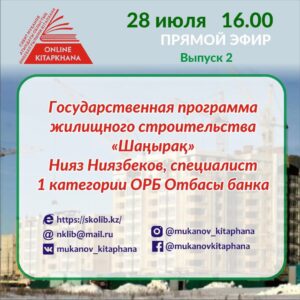 Приглашаем на прямой эфир "Государственная программа жилищного строительства «Шаңырақ», где Нияз Ниязбеков, специалист 1 категории ОРБ Отбасы банка во втором выпуске расскажет нашим читателям и пользователям страничек социальных сетей о программе жилищного строительства.