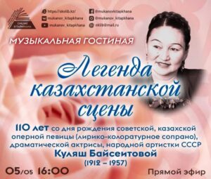 Приглашаем на прямой эфир нашей музыкальной гостиной "Легенда Казахстанской сцены" 110 лет со дня рождения советской, казахской оперной певицы (лирико-колоратурное сопрано), драматической актрисы, народной артистки СССР Куляш Байсеитовой (1912-1957).