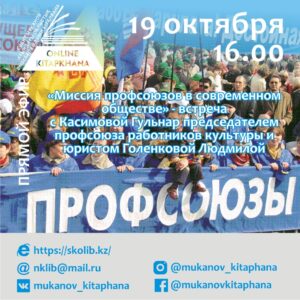Приглашаем на прямой эфир «Миссия профсоюзов в современном обществе». Онлайн встреча с Касимовой Гульнар председателем профсоюза работников культуры и юристом Голенковой Людмилой.