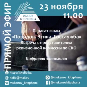 Приглашаем на прямой эфир в рамках проекта "Парасат жолы" под названием «Порядок. Этика. Госслужба». Встреча с представителем ревизионной комиссии по СКО. Цифровая экономика.
