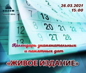 Приглашаем на прямой эфир "Живое издание". Мы приготовили для вас календарь знаменательных и памятных дат. Знать какие даты важно отмечать, о каких стоит вспомнить и какие нельзя забывать - это очень увлекательно и интересно. Ведь, практически каждый день у нас уходит в историю, и мы его уже не вернём, поэтому стоит задуматься какую историю мы после себя оставляем нашему будущему поколению.