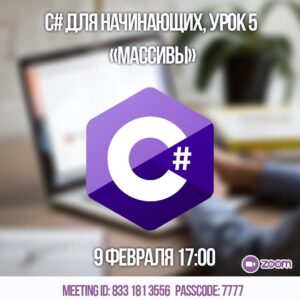 Приглашаем всех подписчиков на zoom-лекцию по теме: " С# для начинающих, урок 5: Массивы.