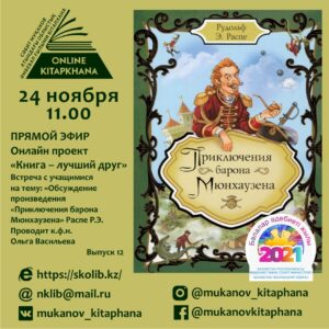 Приглашаем посмотреть наш очередной выпуск онлайн-проекта «Книга – лучший друг». Встреча с учащимися на тему: «Обсуждение произведения «Приключения барона Мюнхаузена» Распе Р.Э.
