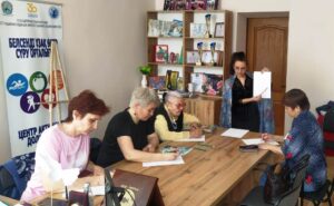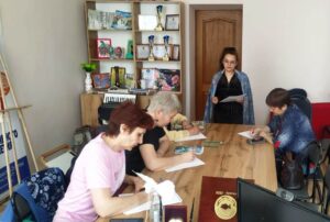 Сегодня на психологическом тренинге "Рисуночный тест "Кресло" для людей старшего возраста из Центра активного долголетия, психолог областной библиотеки имени Сабита Муканова, Елена Скакунова провела занятие на котором участники знакомились с методиками изотерапии и