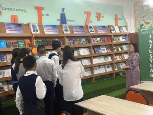 Экскурсия барысында кітапхананың оқырмандарға қызмет көрсететін барлық бө-лімдерінің қызметімен, кітап қорымен таныстырылды. Сәбит Мұқановтың әдеби-мемориалдық музей бөлмесі көрсетілді. Оқушылар Makerspace бұрышынымен танысты. Экскурсия соңында сол мектептің орыс тілі мен әдебиет пәнінің мұғалімі Сарсимбаева Аимжан Каппасовна мағыналы да қызықты экскурсия үшін алғысын білдірді.